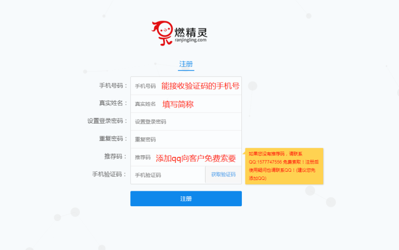 进入网页端口,点击注册,注册一个账号,推荐码可加客服号1577747556
