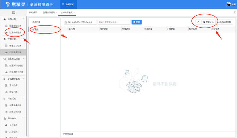 清洗完毕以后,可以选中要下载的任务,点击右上角的下载文件,讲清洗过的号码下载下来。